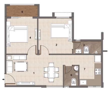 The flooring in balconies, toilets & wash area will be of 600 x 600 mm anti skid ceramic tiles. (Porcelain Tile) (300 x300 for bal/ uti/ toi & wash area)