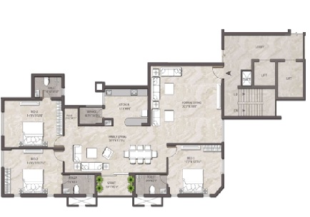 Power backup for all the essential points inside the flat & common areas &lift will be provided.