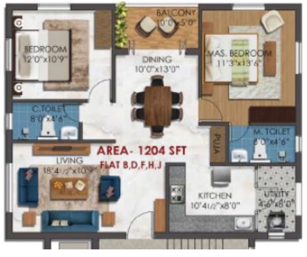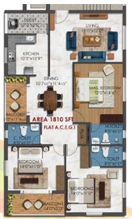 Unit sizes of the KCee Abinavam ranges from 1204 - 1810 Sq.Ft .