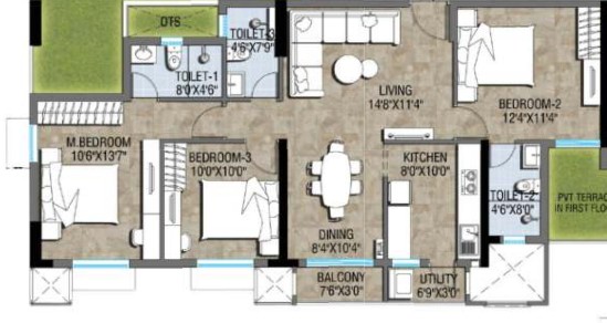 The project rises up Stilt + 14 floors, across 2 blocks, giving it that balanced mid-rise look without being too towering. And it sits on a generous 11.8-acre plot, which gives the entire place a good amount of breathing room. You’ll find both 3 BHK and 4 BHK units here—no 1BHK or tiny stuff. These are meant for people who plan to stay, not just invest and rent out.