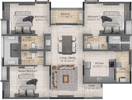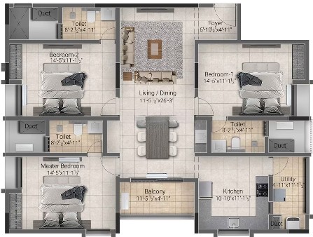 Developed by Krishna Constructions, this single-tower project rises ground plus 10 floors, offering just 110 premium 3 BHK flats, each spanning 1815–1819 sq. ft. No clutter. No crowd. Just a tight-knit vertical community that respects space, privacy, and time, making life easy, elegant and extra ordinary.
