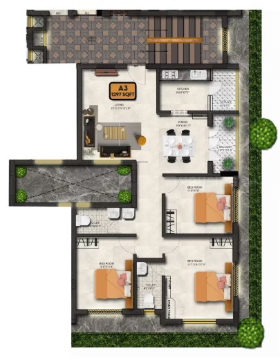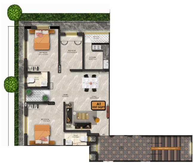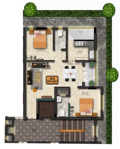 Unit sizes of the Krishnalaya ranges from 989 - 1297 Sq.Ft .