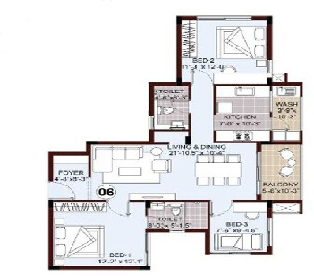 Living, dining and bedrooms will be finished with vitrified tiles 2’0”*2’0”/ 1’6”*1’6” as prescribed by the architect.