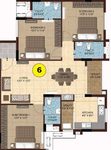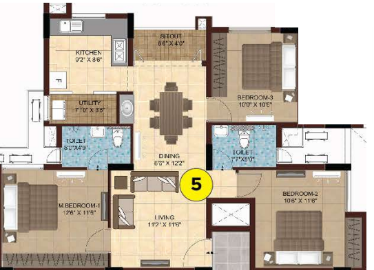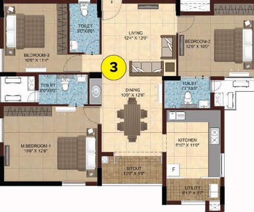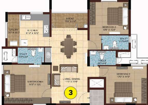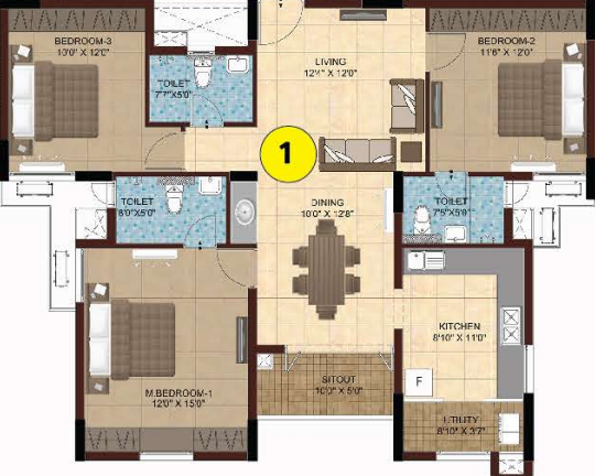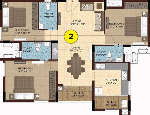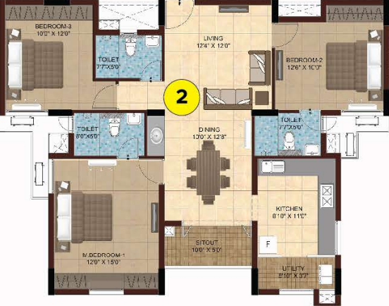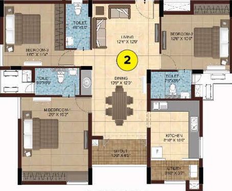 Unit sizes of the Le Palais ranges from 985 - 1514 Sq.Ft .