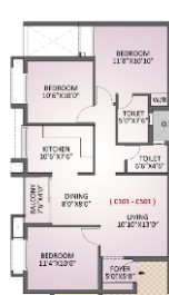 Living, Dining, Kitchen and Bedroom Areas will be finished with 24" x 24" Vitrified Tiles with 4" high skirting as per Architect's concepts.