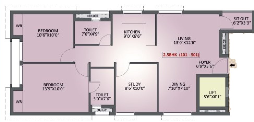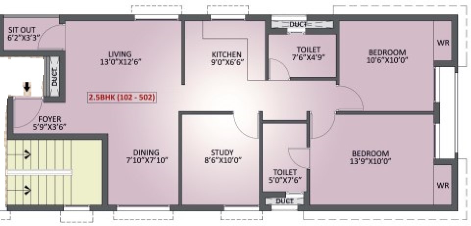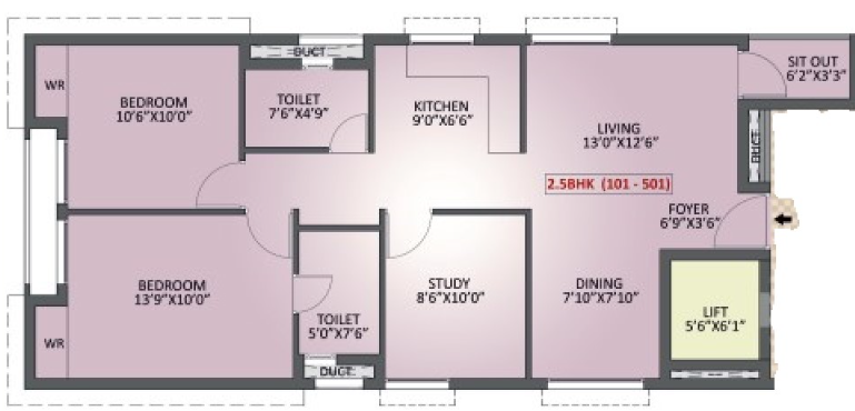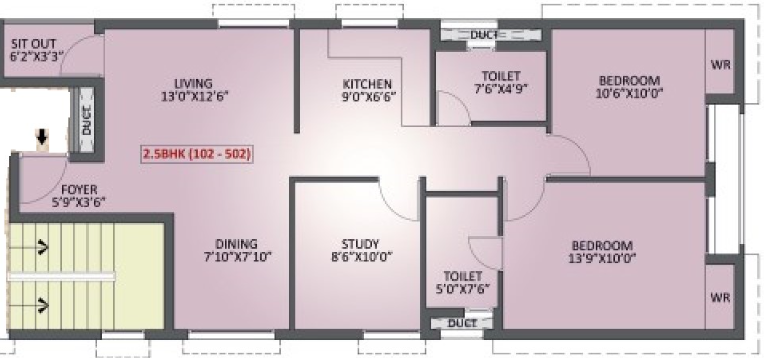 Living, Dining, Kitchen and Bedroom Areas will be finished with 24"x24" Vitrified Tiles with 4" high skirting as per Architect's concepts.