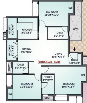 3 AC points for 2-bedroom apartments and 4 AC points for 3-bedroom apartments.