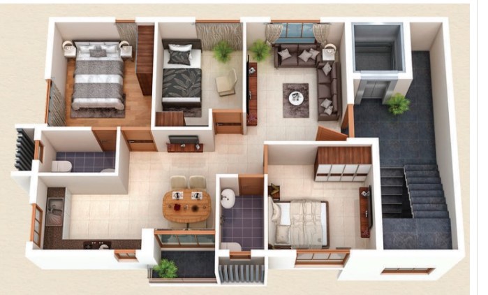 Foyer, Living, Dining, Kitchen and Bedrooms will have 2' x 2' Polished Vitrified flooring