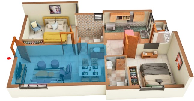Living, Dining, Kitchen & Bedrooms – Vitrified tiles – 600 X 600mm Kajaria / KAG or Equivalent make.