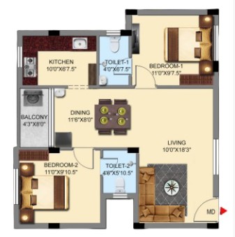 Common Area – Stilt floor Lobby – Granite flooring. Corridors & typical floor lobby – vitrified tiles.