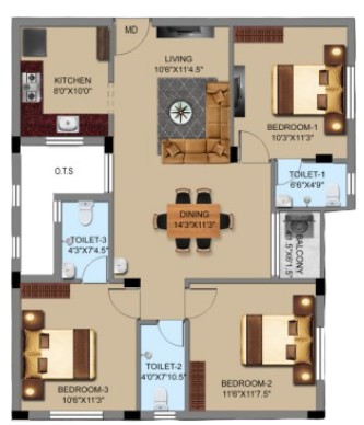 Split-air conditioner: Point will be given in living & all bedrooms.