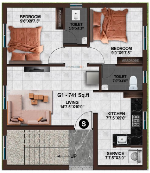 MP Jai in Polichalur, by MP Developers. It’s not one of those high-rise, packed-to-the-brim types. You’re looking at just 5 units, tucked into 0.12 acres. That alone tells you it’s peaceful. Just a Ground + 2 Floor setup, single block,so yeah, it feels more like a close-knit living space than a buzzing apartment cluster. Now, for the numbers that matter,flats range from 741 to 857 Sq.Ft, which works well for someone looking at decent-sized 2 BHKs. Not cramped, not overdone. Enough space to live comfortably without overthinking furniture placement.