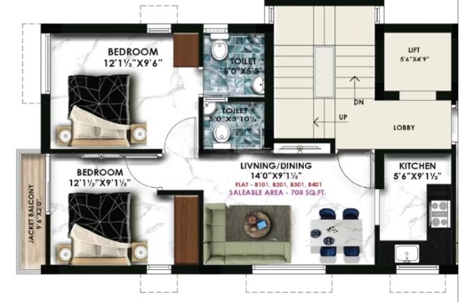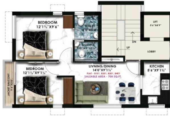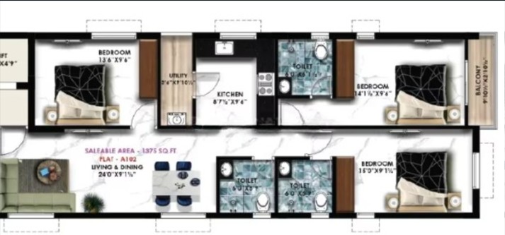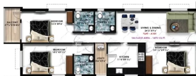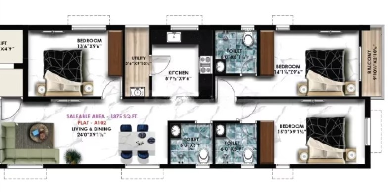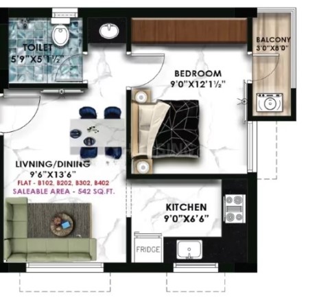 Unit sizes of the Nahar East ranges from 542 - 1470 Sq.Ft .