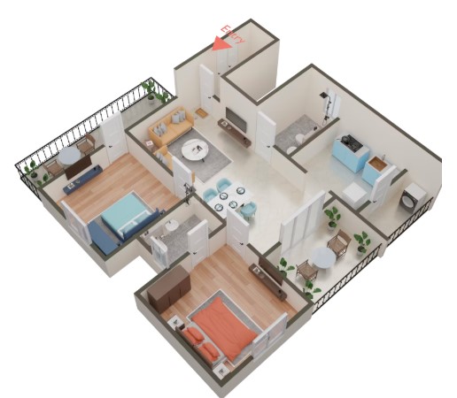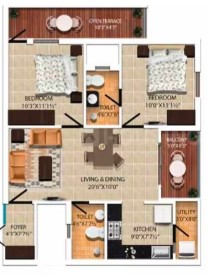 Living/Drawing, Dining, Rooms & Kitchen will be of 2 x 2 vitrified tiles.