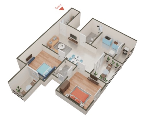 Unit sizes of the Nahar Grandeur ranges from 919 - 1029 Sq.Ft .