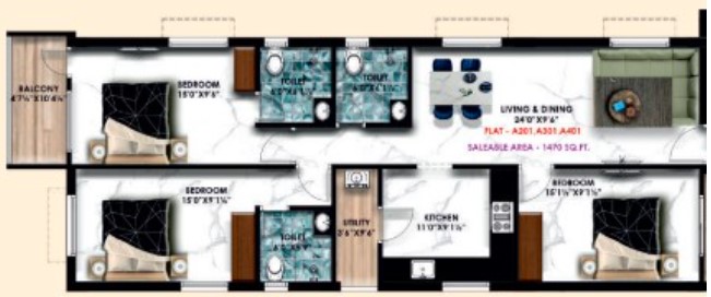 • Living, dining and bedroom area will be finished with good quality vitrified tiles of builder’s choice with necessary skirting.