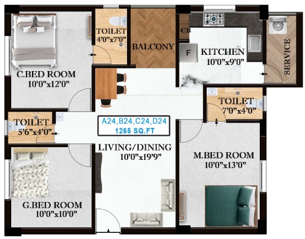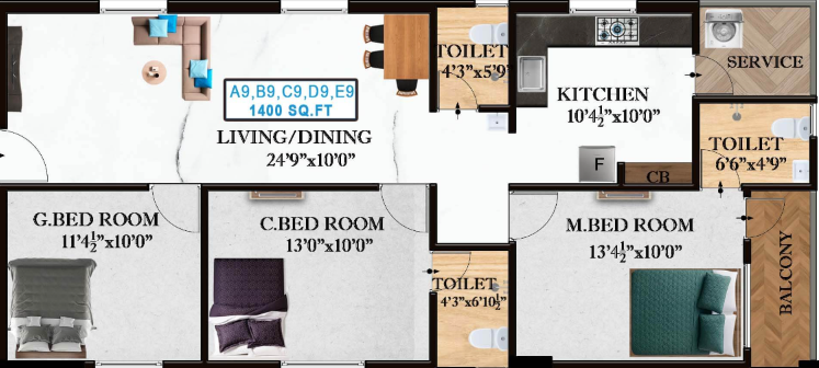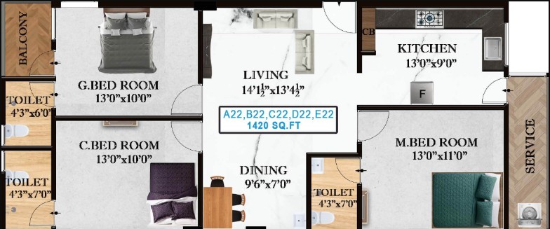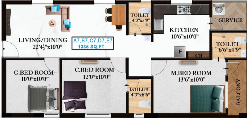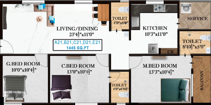Unit sizes of the Nest Art ranges from 1265 - 1445 Sq.Ft .