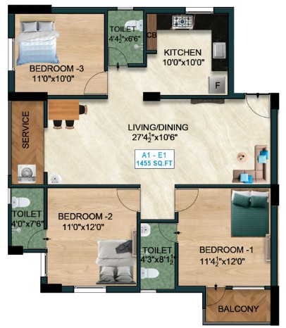It’s spread over 1 acre, not too big, not too tiny. Just the one block here, and it goes up 5 floors. Nothing over the top. No cluster of towers. That alone already gives the project a bit of breathing room. You’re not gonna feel boxed in. And the units? Each flat runs between 1315 to 1455 sq.ft,so not cramped at all. These aren't pigeonholes, they’re proper family-sized apartments.