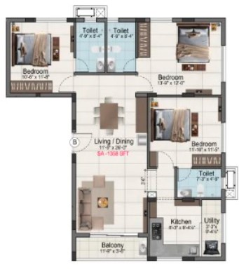 Nutech Preethi finds its rhythm in a quieter part of Valasaravakkam. Two low-rise blocks, four floors each, sit tucked into a calm 0.12-acre parcel. Just 16 homes. All 3 BHK. All shaped thoughtfully between 1323 and 1358 sq. ft.,not overbuilt, not underdone. It doesn’t ask for attention. It earns comfort in quieter ways,through light that moves easily across rooms, through corners that feel lived-in even before the furniture arrives. Every layout flows with purpose, nothing extravagant, nothing wasted.