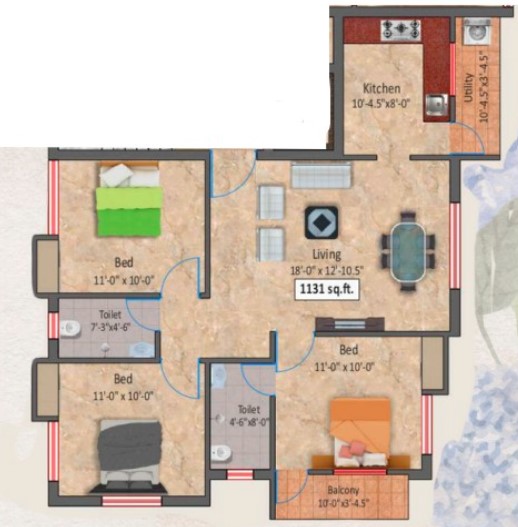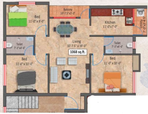 Unit sizes of the Peace Enclave ranges from 1068 - 1131 Sq.Ft .