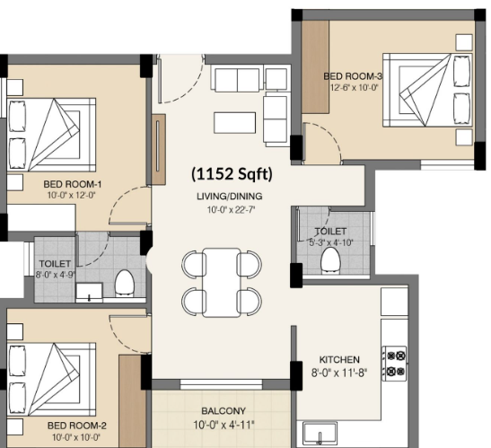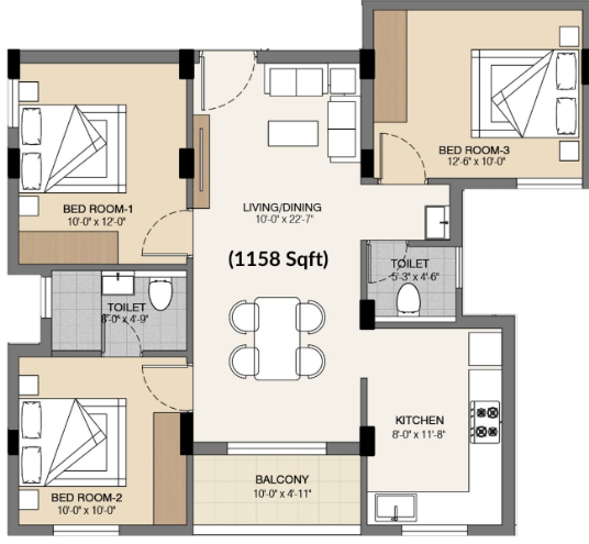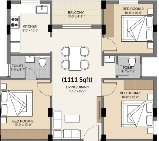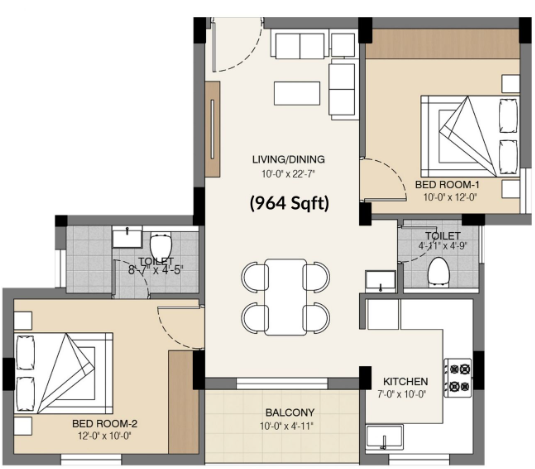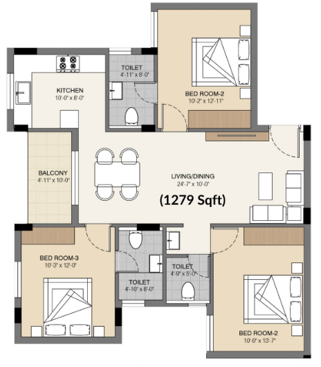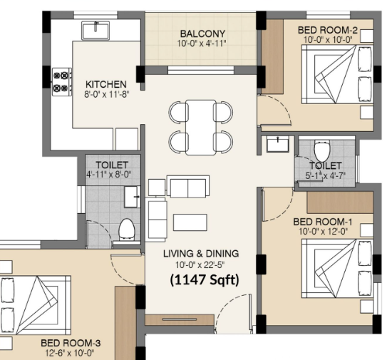 Unit sizes of the Pearl Elita ranges from 964 - 1279 Sq.Ft .