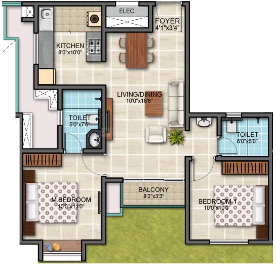 Foundation & Super structure: RCC shear wall structural System, Seismic zone II Compliant