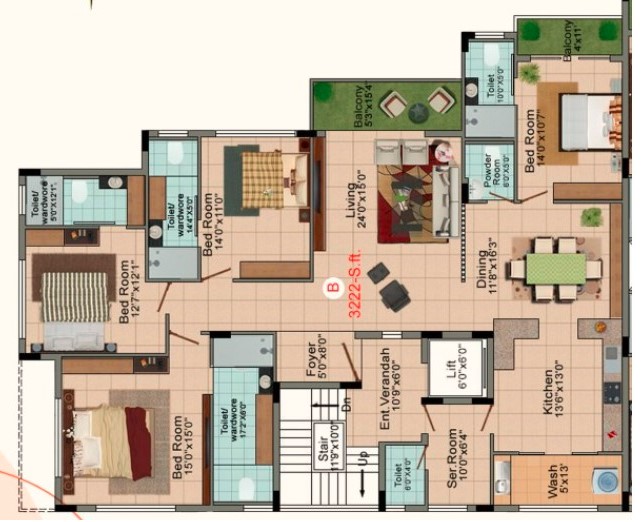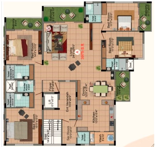 Unit sizes of the Prince Elite ranges from 3222 - 3975 Sq.Ft .