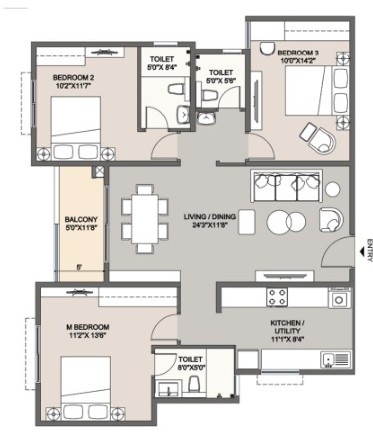 With a total of 13 floors (stilt + 12 floors) in the 4 blocks, Puravankara Thrive gives a stylish and simple look. There is no chance for high clusters; apart from that, you can see naturally lit and well-ventilated homes which make every square foot count. Puravankara Limited, a trusted builder, has come up with Puravankara Thrive with detailed attention and commitment to deliver the perfect living space as per home buyers’ requirements. The location is considered a big win as it is close to major IT hubs, schools, colleges, and other important zones. It makes your everyday living more convenient and easier.