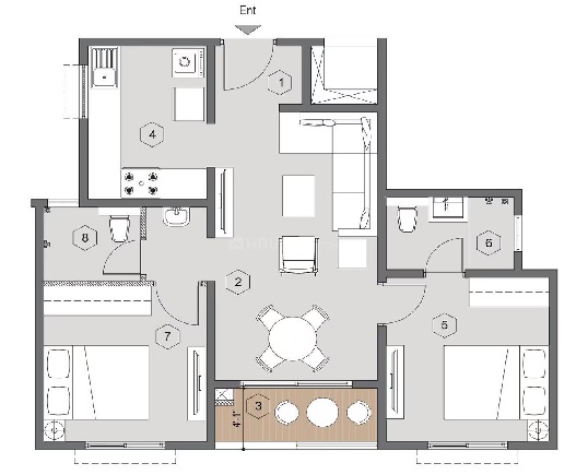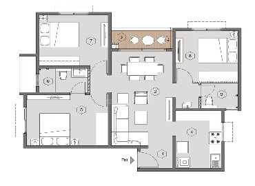 Bedrooms Balconies Kitchen/ Utility: Vitrified tiles.