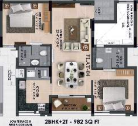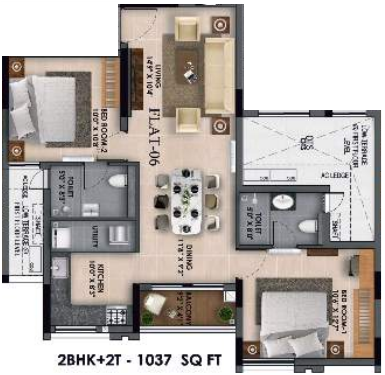 Semi counter Washbasin with polished granite for 4BHK units, wall hung wash basin in 3BHK & 2.5BHK units, No wash basin in 2BHK & compact 2BHK units.