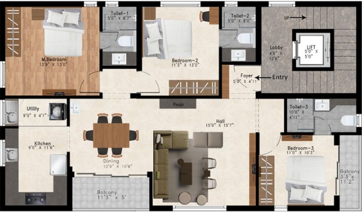 Rajali Paradise stands with quiet conviction in the heart of Adyar,a location already steeped in grace, rhythm, and an older kind of charm. With only ten 3 BHK homes across one block of ground plus five floors, it doesn’t try to rise above the city. Instead, it becomes part of it,folded in, quietly held. Each home spans 1725 sq. ft., shaped for families who’ve outgrown the rush of trends and now seek something steadier. The flow from room to room feels considered. Light moves with intention. And the proportions hold a rare elegance , refined but never in a showy way.