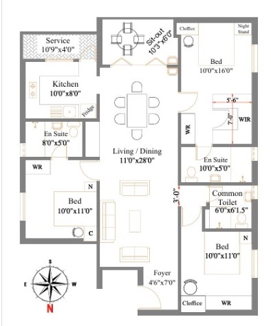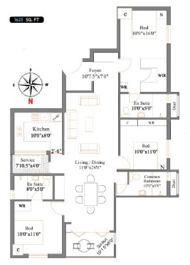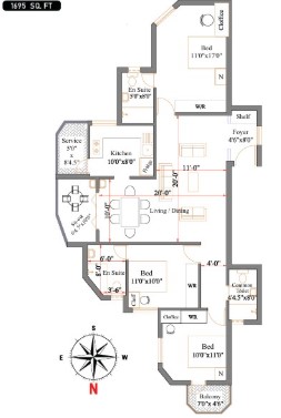 Unit sizes of the Rajmeena Paradise ranges from 1537 - 1695 Sq.Ft .