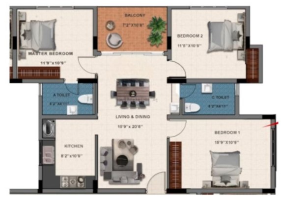 There are 53 units in total, offering both 2 and 3 BHK apartments. It’s not a crowded place — that’s one of its plus points. You’ve got homes ranging in size from 812 sq.ft to 1270 sq.ft, which is enough space for a small family or even someone downsizing from a larger house.