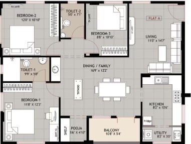 Built over 14,870 sq. ft., the single Stilt + 4 Floor block holds just 25 units, each one a 3 BHK stretching between 1294 to 1699 sq. ft. Nothing showy. Just honest spaces with room for memories.