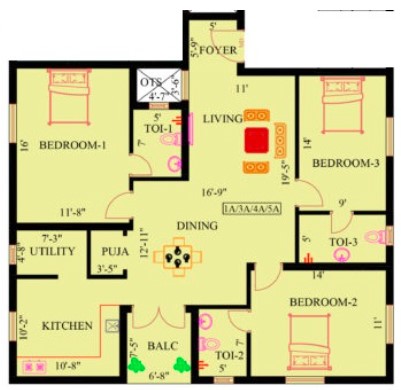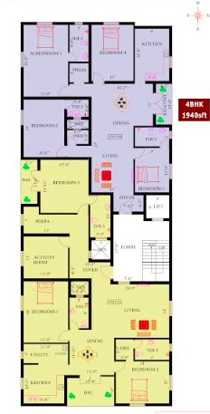 Set on 0.16 acres, this single-block development will eventually house just 14 residences,across 2, 3, and 4 BHK configurations. Unit sizes range from 1050 to 1940 sq. ft., and each plan feels considered, not crowded. The elevation, Stilt + 5 Floors , is measured for light, air, and longevity. These flats in Abhiramapuram aren’t just another offering. They’re a mark of trust that is etched in brick, balance, and time.