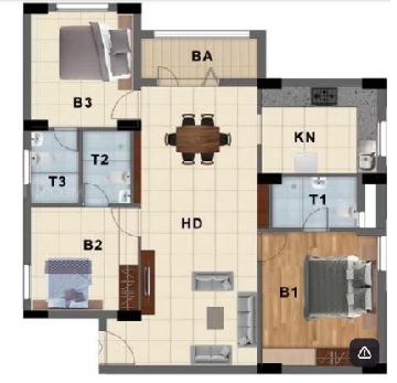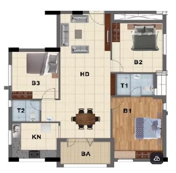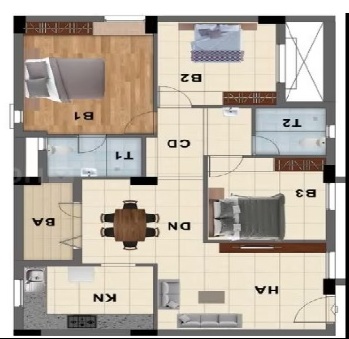 Living, dining, kitchen and bedrooms will have vitrified tile flooring of 600mm x 600mm.