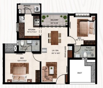 1, 2, and 3 BHK measure a unit size of 615 to 1712 sq. ft., which means the residents can choose their preferred apartment as per their preferences and family size. The configuration of unit size range for 1, 2, and 3 BHK flats are 615 sq. ft., 905 to 1161 sq. ft., and 1485 to 1712 sq. ft. respectively. Every flat is crafted in a way they get the same amount of ventilation and natural light to feel a refreshing atmosphere throughout the day.