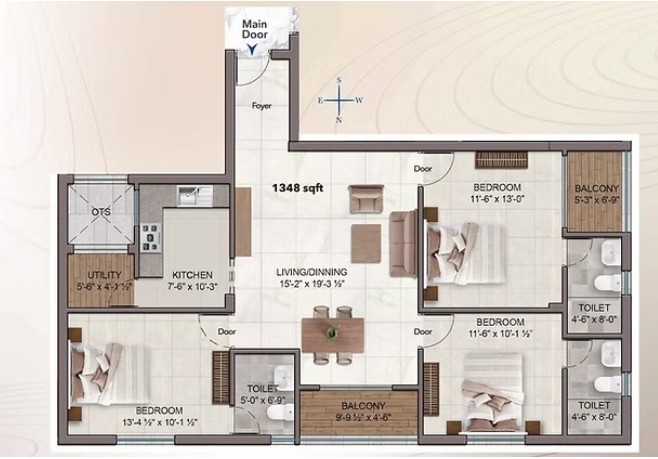 Unit sizes of the Sagas Orion ranges from 1348 - 1532 Sq.Ft .