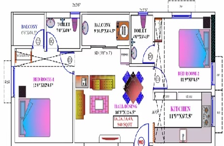 Flooring: All flooring will be of vitrified tiles of 24” x 24”