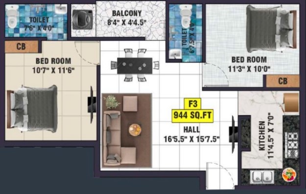Unit sizes of the Sai Deccan ranges from 944 Sq.Ft .