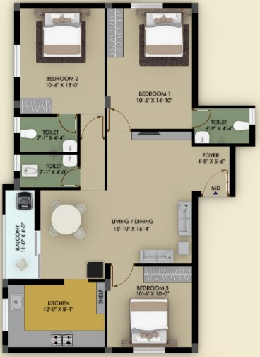 Sizes go from 796 sq.ft to 1352 sq.ft, depending on the unit. So there’s room to pick something that fits both your needs and your budget.
