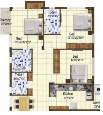Bathroom: Anti skid & acid resistant tiles of reputed make.