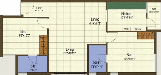 Utility : Granite platform and stainless steel sink with drain board, separate taps for municipal water and softened bore well water. Provision for fixing water purifierand exhaust fan.