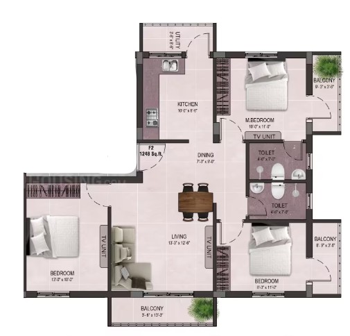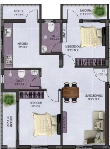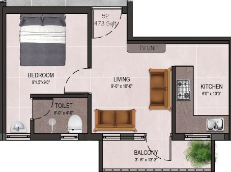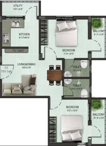 Unit sizes of the Shelter Tulip ranges from 473 - 1248 Sq.Ft .