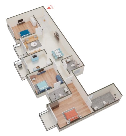 FOYER/LIVING/DINING/BEDROOMS & BALCONY