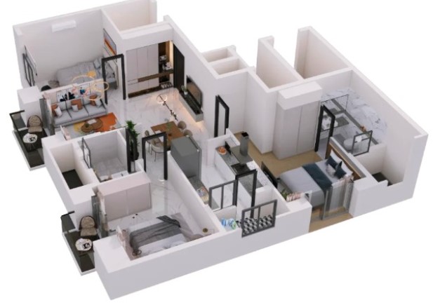 Locks: Double lock lever key system for Main Door and single lock lever key system for Internal Doors & Knobs for Bathroom Doors
