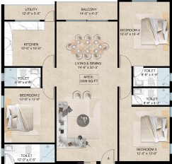 Unit sizes of the Skyline Harmony ranges from 2153 - 2226 Sq.Ft .