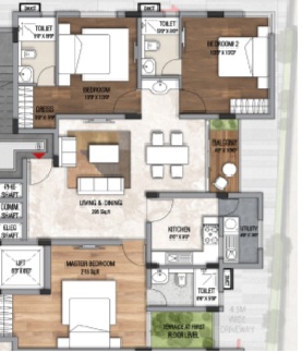 Developed by SPR India, the project spans an impressive 63 acres, with 695 apartments spread across 4 sleek towers, each rising up to 36 floors. These are among the tallest residential buildings in Chennai—yet they’re built with a clear focus on space, privacy, and flow.