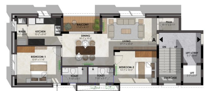 •Generator back up for lights/fan in all rooms, Lighting at the entrance area, Calling Bell, Fridge, Washing Machine, TV Points, except AC, Microwave & Oven - 3 KW for Each Flat.