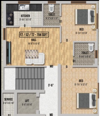 1’x1’ digital tiles at Rs.45/Sq.Ft will be provided at the Stilt floor ( parking area).
